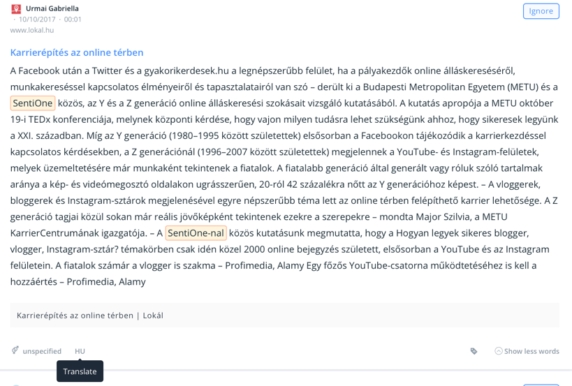 Rádi bychom vám připomněli, že SentiOne může monitorovat zmínky napsané v několika jazycích. Pokud váháte, zdali používat multimarket dashboardy, protože neznáte ostatní jazyky, jednoduše vyzkoušejte funkci překladače.