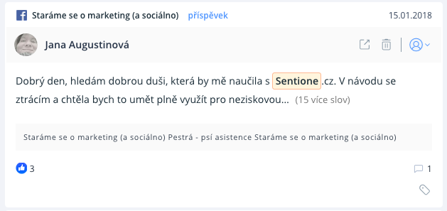 S nástrojem SentiOne React můžeme zákazníkovi odpovědět ihned po té, co publikuje svůj příspěvěk nebo odpověď na příspěvek delegovat.