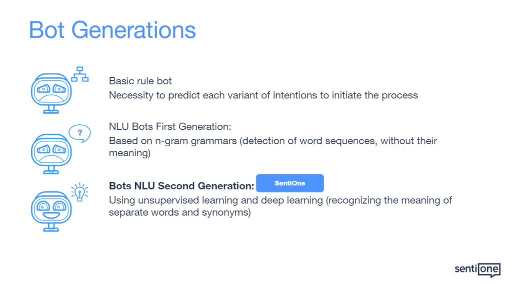 If you still do not know what bot you need, such tools as SentiOne come to your aid. Thanks to online listening and data analytics, you will find out what problems your clients report most often, what topics of conversation are most often repeated, what is their volume. Data obtained from the internet monitoring also constitute an excellent training base for the bot, necessary to define the processes and intentions recognised by the bot.