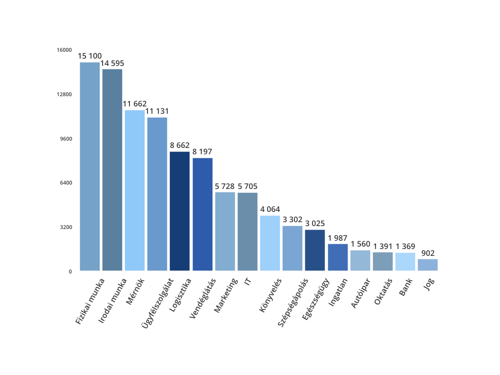 És vajon miként aránylik egymáshoz az online meghirdetett állásajánlatok mennyisége különböző szektorokra bontva? Így:
