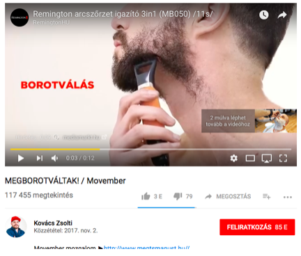 A közösségi médiára megfogalmazott kampányok és hívószavak képesek ráirányítani a figyelmet az olyan típusú prevenciós szűrővizsgálatok fontosságára, mint például a PSA. Jelen esetben ez a feladatuk. Nyilván a ‘PSA’ szót nehezebb lenne hashtagelni, miközben a Movember mind koncepciójában, mind megjelenésében közösségivé teszi a témát: megosztásra, hashtagelésre alkalmassá. Erre pedig szükség van. A SentiOne adatai szerint 2017-ben a PSA szűréssel kapcsolatos magyar nyelvű online bejegyzések száma még a 100-at sem éri el, miközben a videóra vett borotválkozás (Kovács Zsolti) vagy éppen egy wearethevr Insta poszt ezreket ösztönöz interakcióra.