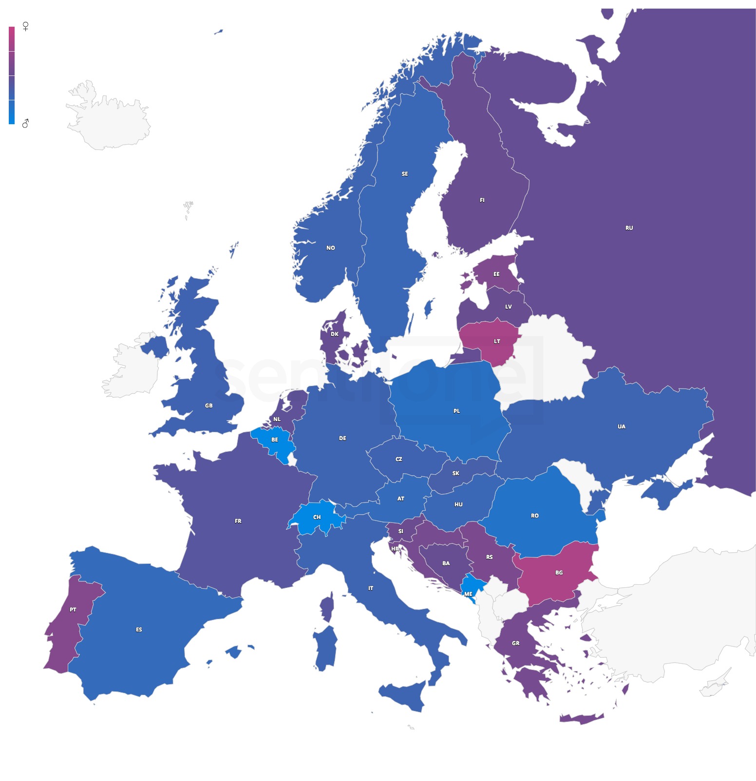 Mindeközben a nők által vállalt szerep sem homogén a 30 országot vizsgáló kutatás eredményei szerint. A dél- és észak-európai régióban a hölgyek nagyon aktívak online a Movemberrel kapcsolatban (minél rószaszínabb az árnyalat, annál magasabb a női posztolók, kommentelők aránya a férfiakéhoz képest, adott országban), míg Közép-Európában jellemzően még mindig, szinte kizárólag a férfiak alakítják a webes diskurzust.