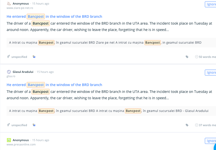 Alább például egy teljesen random, de annál kritikusabb online krízishelyzet mintapéldája, ami a bankszektort érintette Romániában. Egy Bancpost-os munkatárs véletlenül kocsival beleszállt egy kirakatba. A konkurens cég (BRD) fiókjának kirakatába…