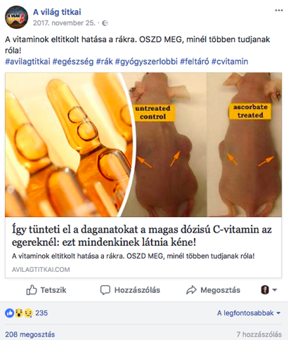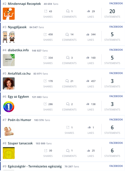 Ráadásul a vényköteles gyógyszerek közösségi média jelenlétét meghatározó ‘fake news’, tartalommutáló ‘oldal-konglumerátumok’ masszív csoportja ebben a kontextusban is jelen van. Az Ajurveda kezelését például alapvetően csak az oldal 900 körüli oldalkedvelője láthatta, épp ezért a posztot továbbdobták több százezres (vásárolt?) követőbázissal rendelkező oldalakra is, mint például (a teljesség igénye nélkül):