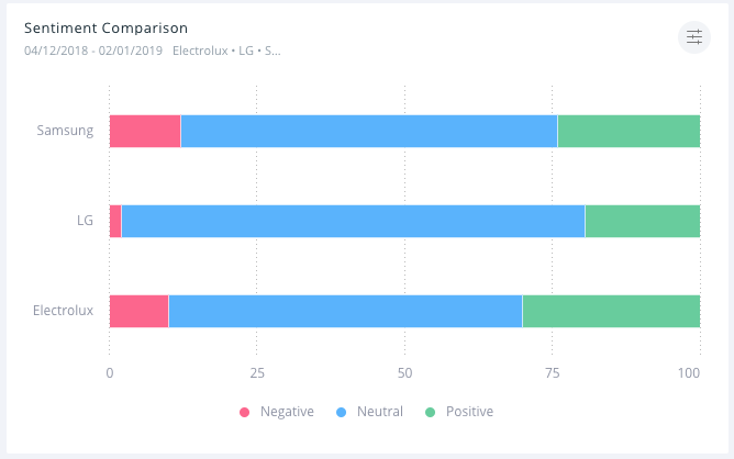 - Using Comparative dashboards you can check out all available comparative options and learn more about your competitors. You have this one new widget, particularly interesting when it comes to setting benchmarks, that shows Sentiment Share between projects.