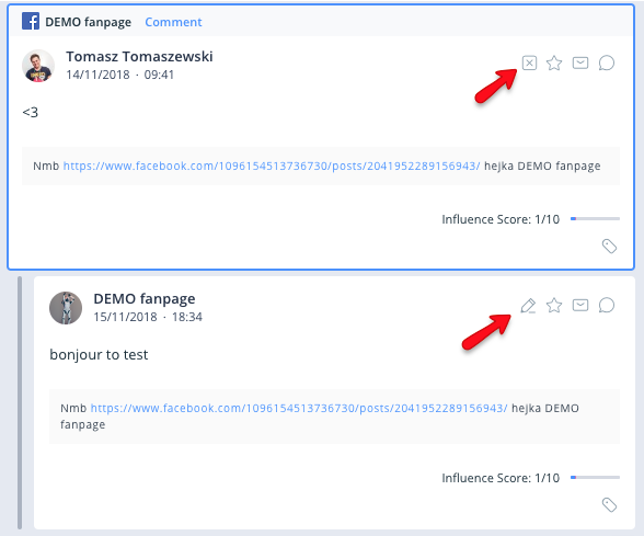 Now, thanks to SentiOne React you can not only answer to user posts and comments but also hide them without logging into FB.