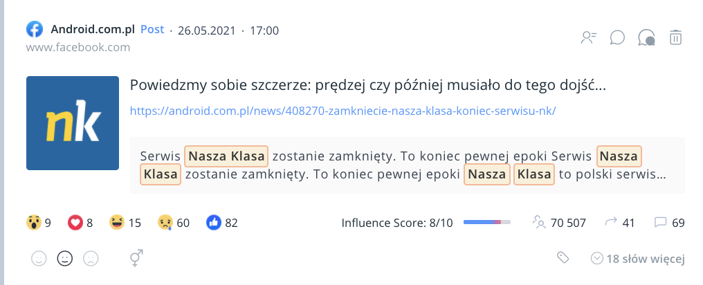 Cały raport z analizy emocji na temat portalu nasza-klasa znajdziecie tutaj