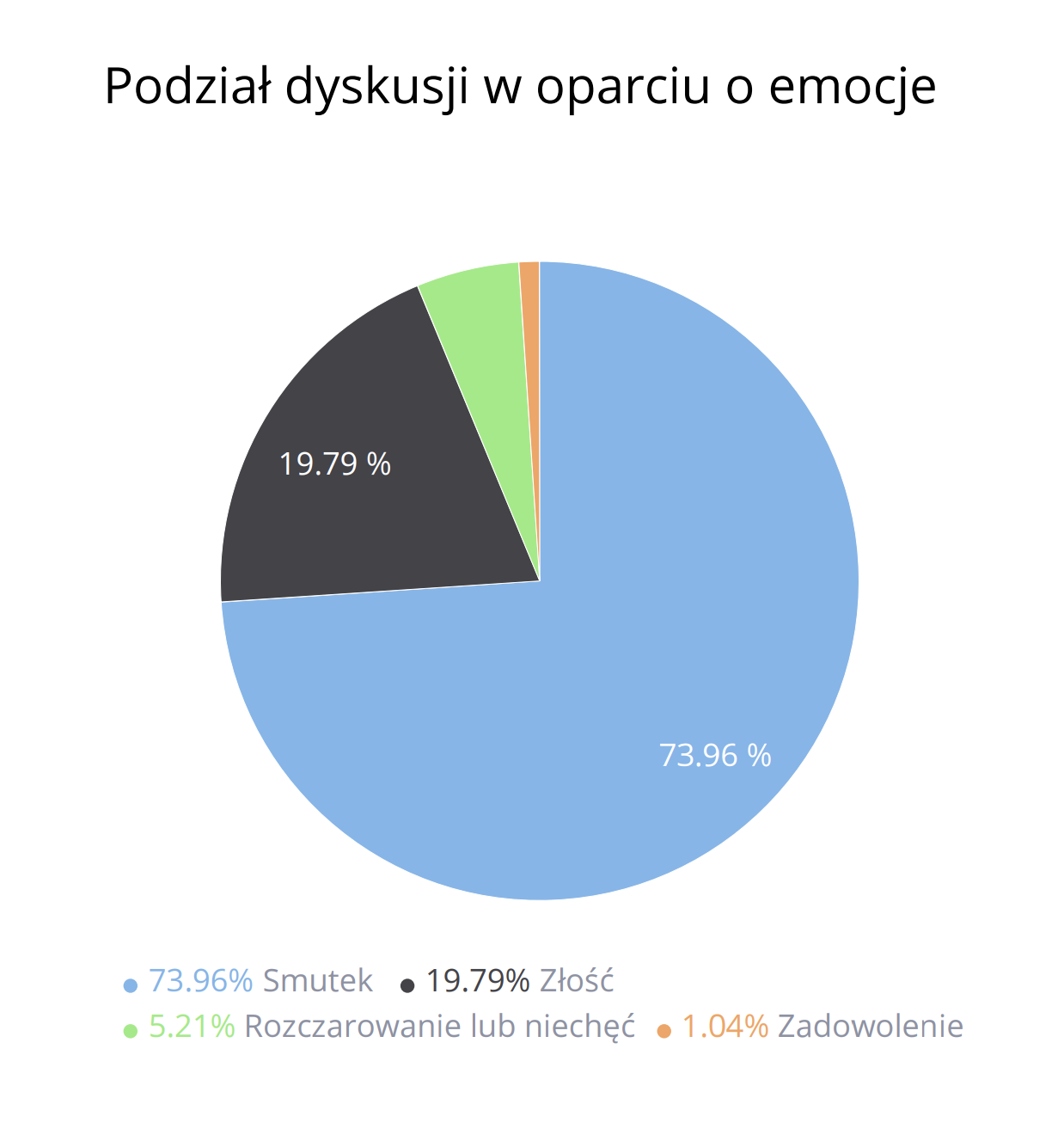 - Dominującą emocją był smutek (73%) następnie złość (19%)