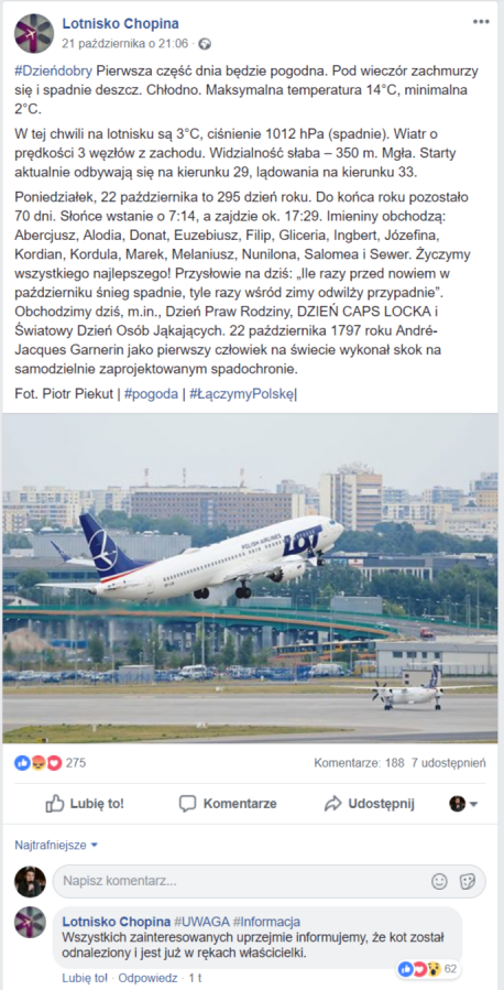 – lotnisko Chopina, na terenie którego zaginął kot