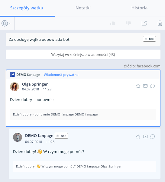 - Integracja z chatbotami na Messengerze