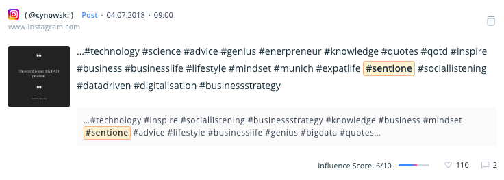 To zupełna nowość w SentiOne. Nasz system analizuje każdą wzmiankę, stronę oraz autora w projekcie i przydziela mu Influence Score w skali 1-10. Rezultat ten oparty jest o to: