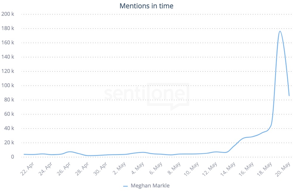 Internetowe wzmianki nt. Meghan Markle w ciągu ostatnich 30 dni.