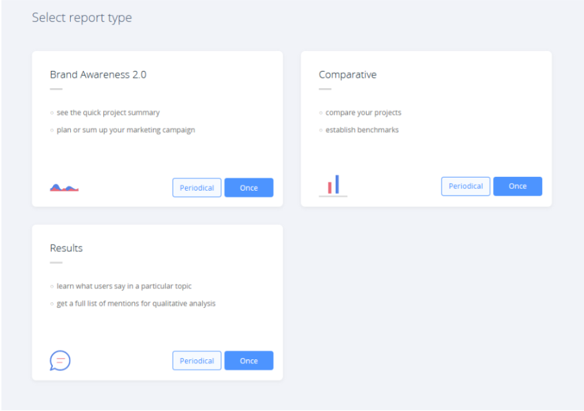 Cztery rodzaje raportów dostępne w SentiOne Listen to: