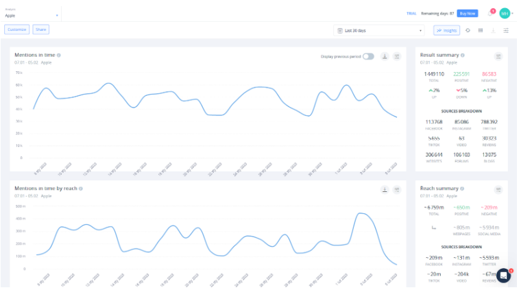 Czujne śledzenie wizerunku zarówno Twojej, jak i konkurencyjnych marek w mediach społecznościowych pozwoli Ci uniknąć problemów z wizerunkiem, zanim dojdzie do ich eskalacji.