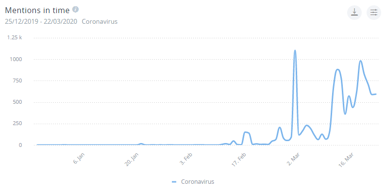 Wzmianki haseł „coronawirus” „COVID-19” i „SARS-COV-2” w czasie