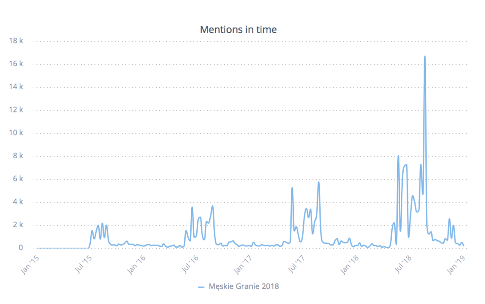 Poza liczbą uczestników koncertów, rok do roku wzrasta także liczba wzmianek na temat Męskiego Grania.