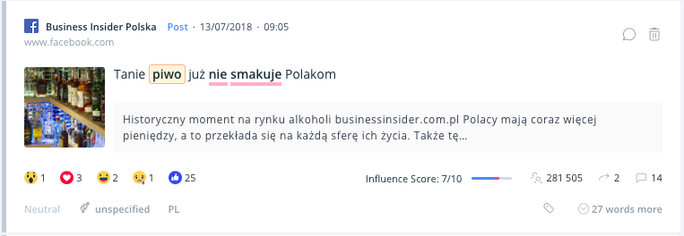 No właśnie – olbrzymia ilość danych dotyczących naszej firmy leży na wyciągnięcie ręki. Sięgnijmy po nią, przeanalizujmy – zróbmy z tego badanie opinii konsumentów. Wnioski przedstawmy zarządowi naszej organizacji w ten sam sposób, jak marketing przedstawia wnioski z badań realizowanych przez firmy badawcze za kilkadziesiąt, a czasem kilkaset tysięcy złotych. Tymczasem social listening jest zdecydowanie tańszy i szybszy.