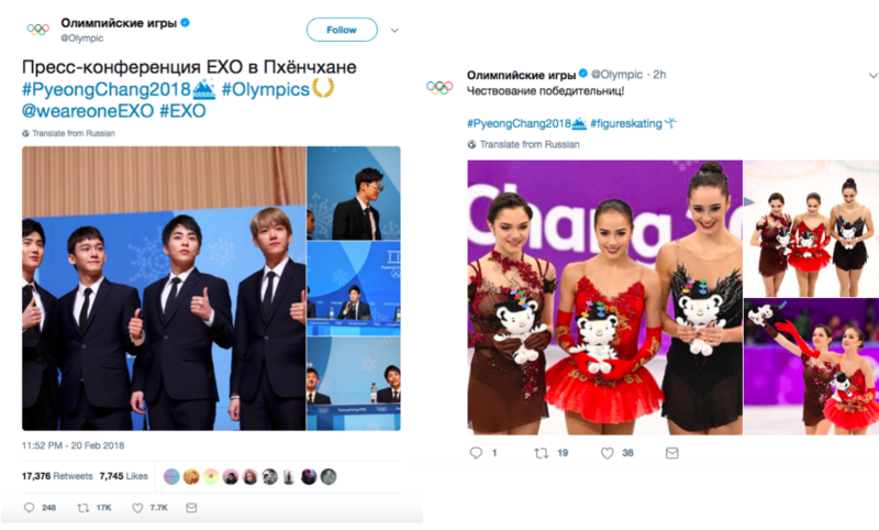 Na rosyjskojęzycznym koncie “Олимпийские игры” medalistki z tego kraju, w porównaniu do EXO “zdobyły” symboliczną liczbę retweetów i polubień.