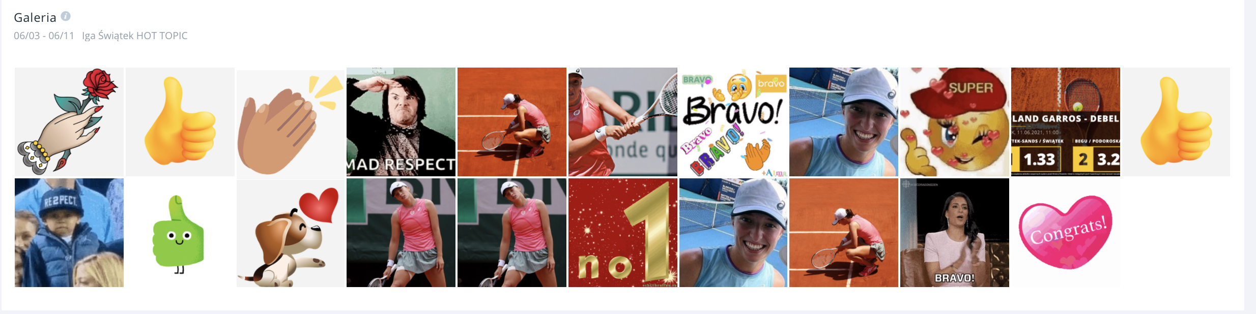 Ciekawostka – o Idzie w tym tygodniu dyskutowało się nie tylko w kontekście turnieju Roland Garros – ale także w kontekście szczepienia! Choć Iga zaszczepiła się 27 maja, to dyskusja na ten temat toczy się do dzisiaj, a w rankingu najpopularniejszych hashtagów znajdziemy #szczepimysię
