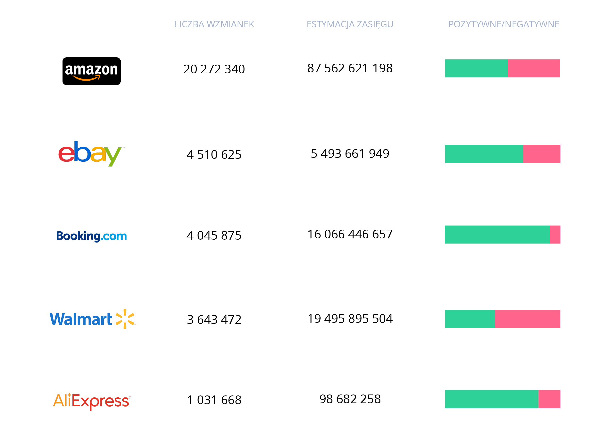 [Table title: Dyskusja na temat TOP 5 globalnych graczy w branży e-commerce w okresie od stycznia do października 2018 r.]