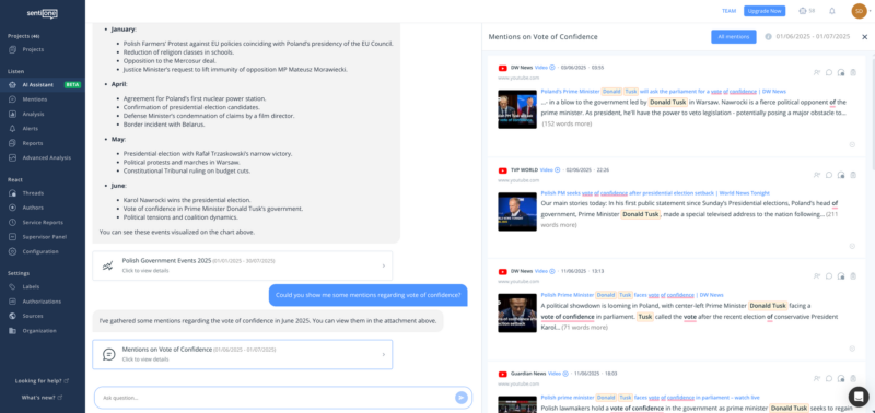 By putting intelligent insights at your fingertips, SentiOne’s AI Assistant empowers every user – regardless of technical background – to harness the full potential of real-time online data.