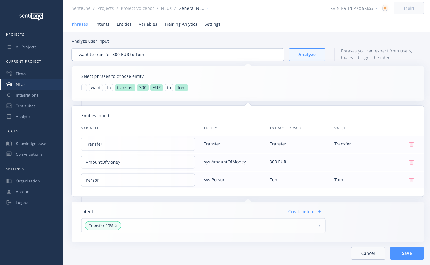 - NLU Schulungsmodus