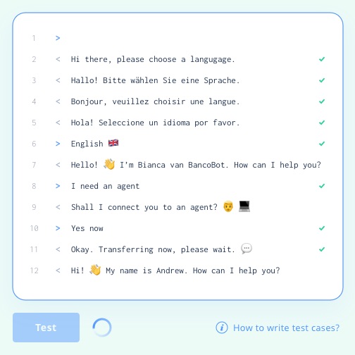 Build chatbots and voicebots at scale thanks to automated testing functionalities. Don't waste time testing manually – use automated tests to monitor both the performance and quality of your bot in real time.