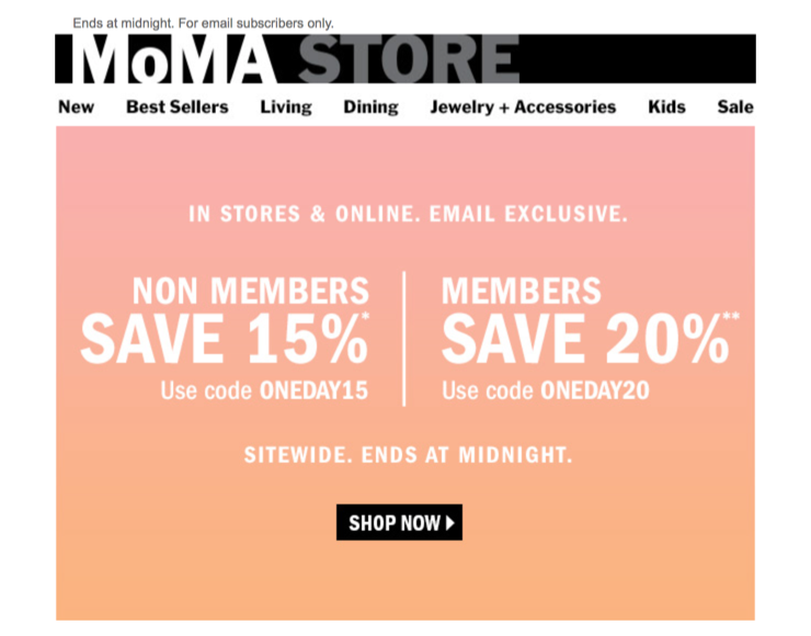 A fragment of an email exclusive offer where members save more